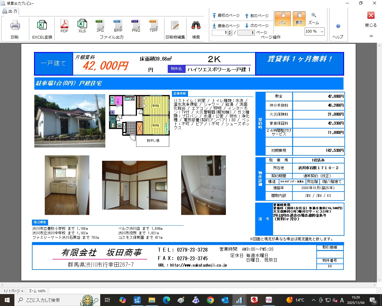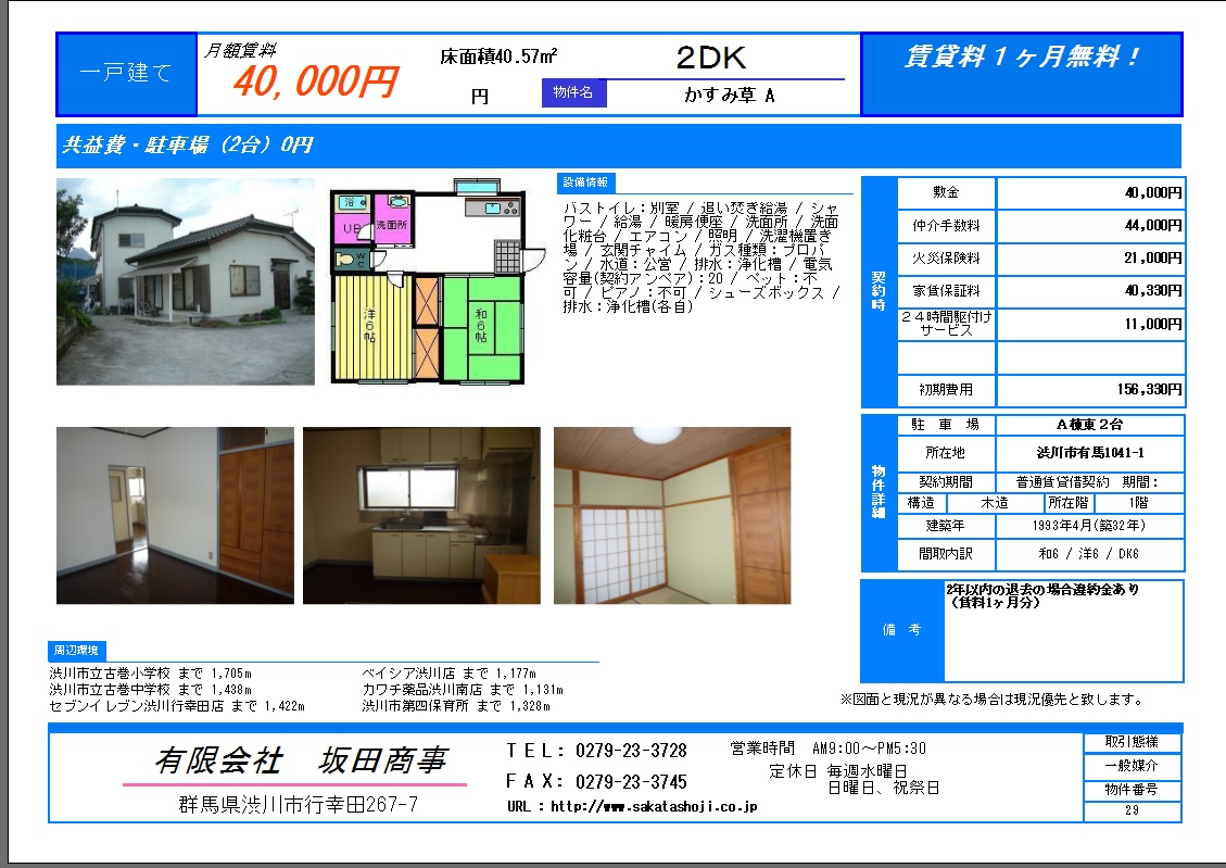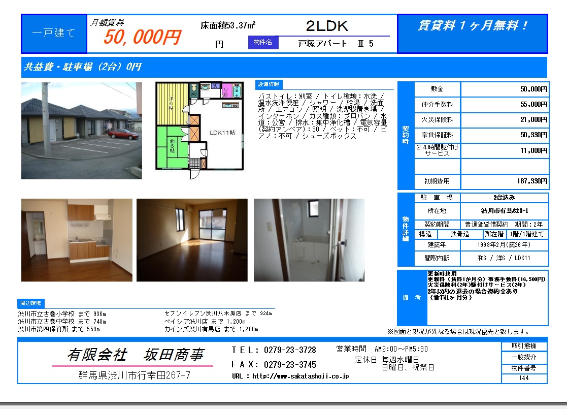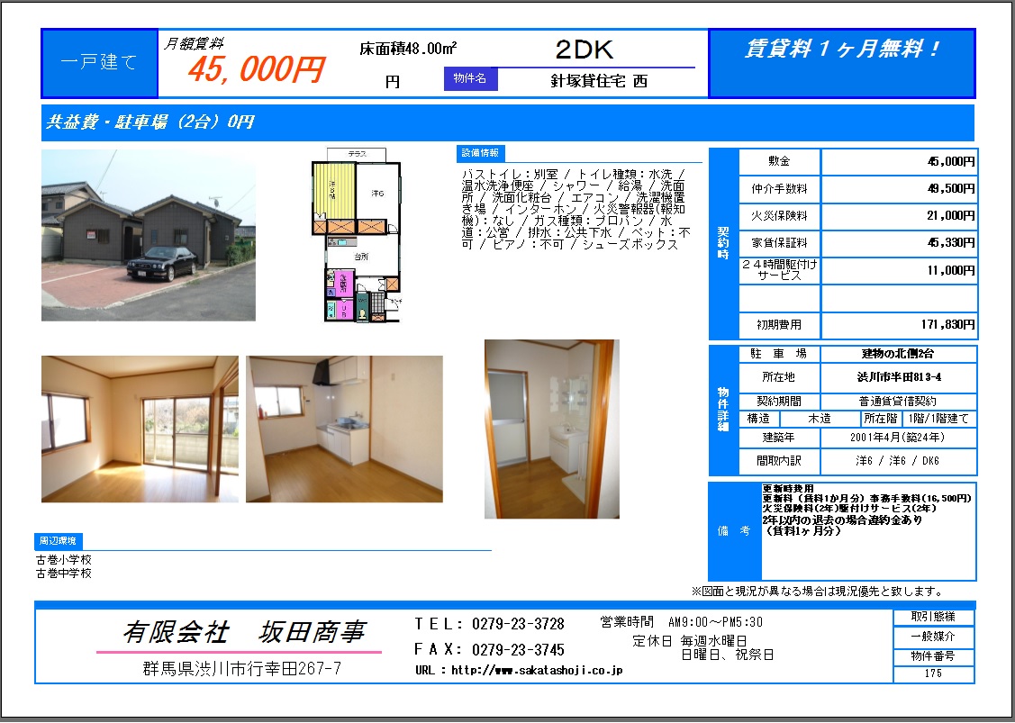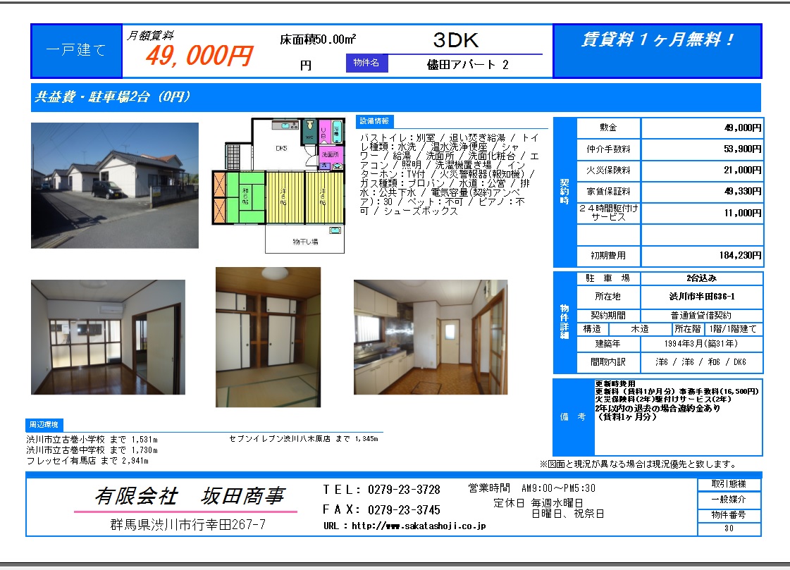 3DK・家賃1ヶ月無料・エアコン・追い焚き・豊秋小学校まで徒歩5分・渋川市役所まで徒歩11分・駐車場2台 |